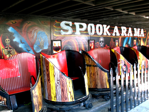 FYI – Anthony and I did get mugged. Thugs (grasping stiletto knives with growling orange tigers printed on the handles) near Spook-A-Rama horror attraction, snatched his wallet and demanded my cash ball. Guess I was stupid and revealed too much.