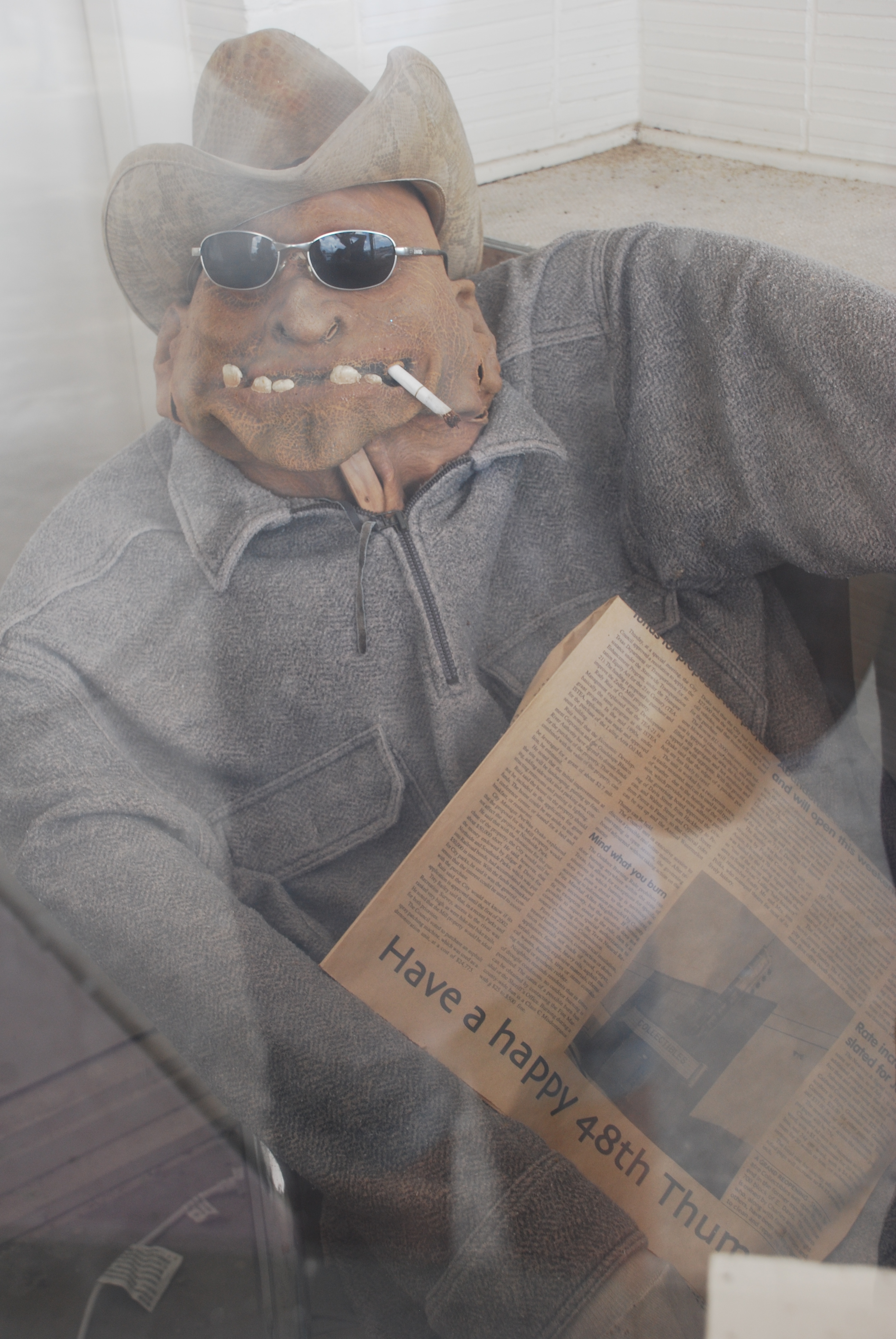 4). The old man is gone. Outside the Luling antique haven (once the town movie theater), was a creepy old man mannequin that sat in the ticket booth. He has been there for years, rotted by the sun. Holding an aged newspaper. I loved seeing him. He was like an anchor. But he was missing this trip. The booth was empty and I hated it. The change really disturbed me.